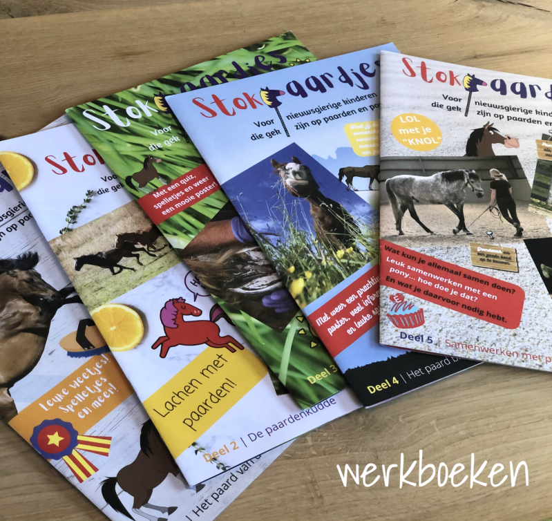 Tijdens onze stokpaardjes leer je aan de hand van spelletjes, opdrachten van alles over paarden. Je krijgt van ons een werkboek met volop leuke opdracht en je leert kennis maken met onze pony's en paarden: Pablo, Liberty en Arie. We werken met een supergaaf werkboek en doen allerlei activiteiten met en zonder onze pony's. Na 5 lessen, verdeeld over 5 weken, weet je alles over paarden!